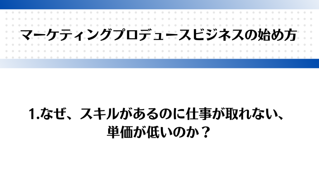 1本目のタイトルは、【なぜ、スキルがあるのに仕事が取れない、単価が低いのか?】です。